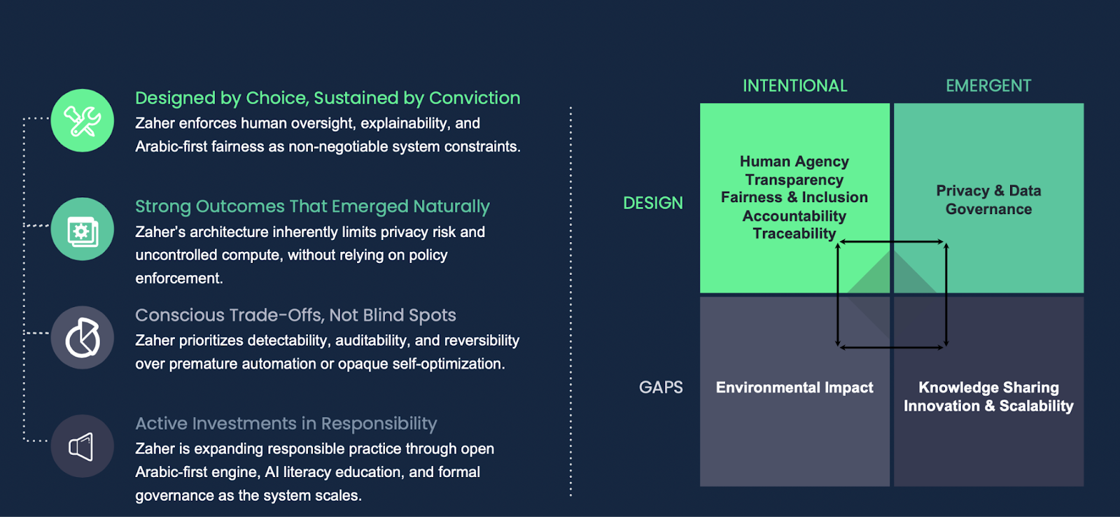 Before the RAI Cup, we believed Zaher was built responsibly. During the RAI Cup competition, we had to articulate why. And in doing so, we realized something important: some of our safeguards were intentional design decisions. Others had emerged naturally from how we engineered the system. And in a few areas, we had consciously chosen trade-offs instead of pretending perfection.