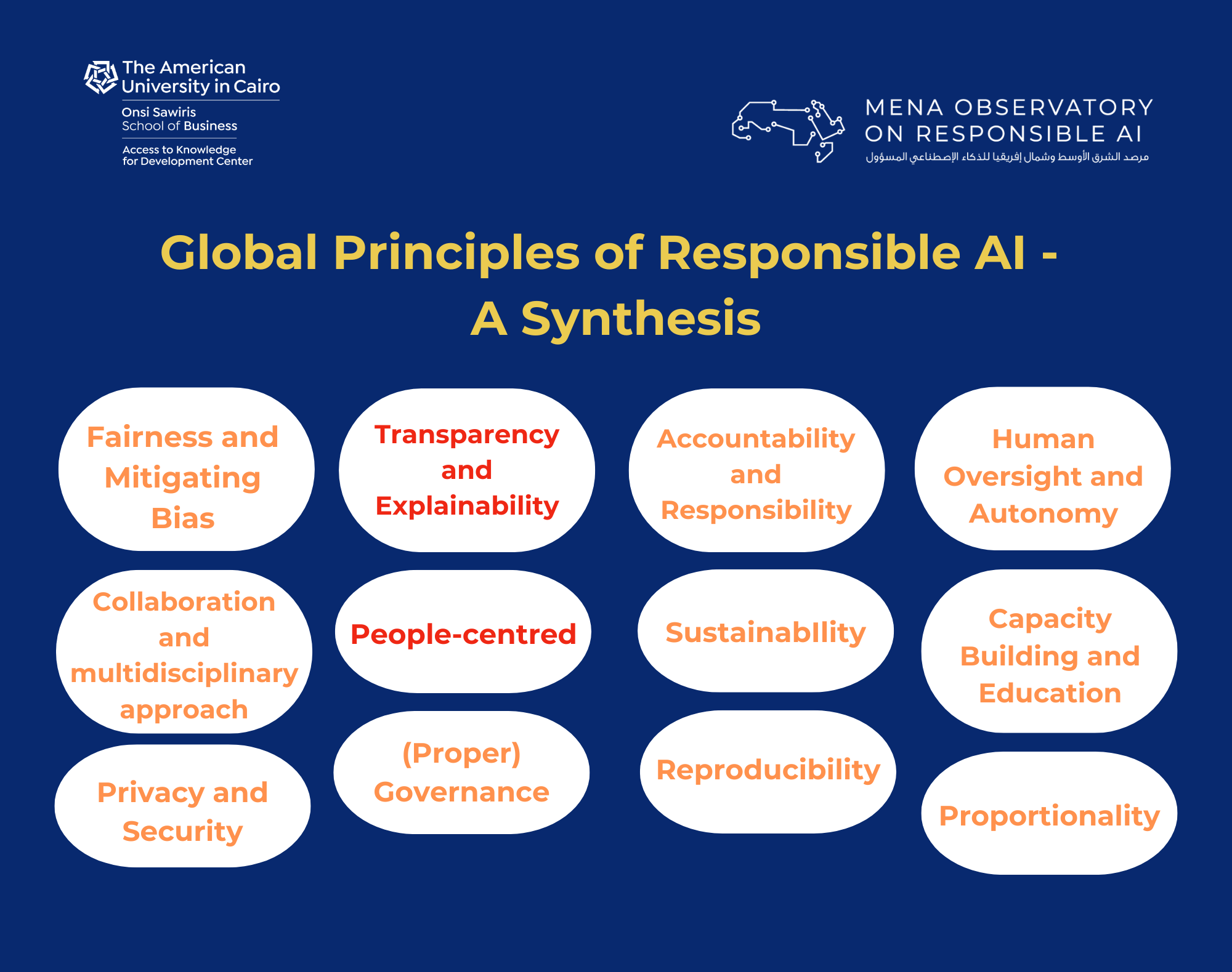 To deepen our understanding of what Responsible AI entails, the MENA Observatory conducted a synthesis of its common principles
